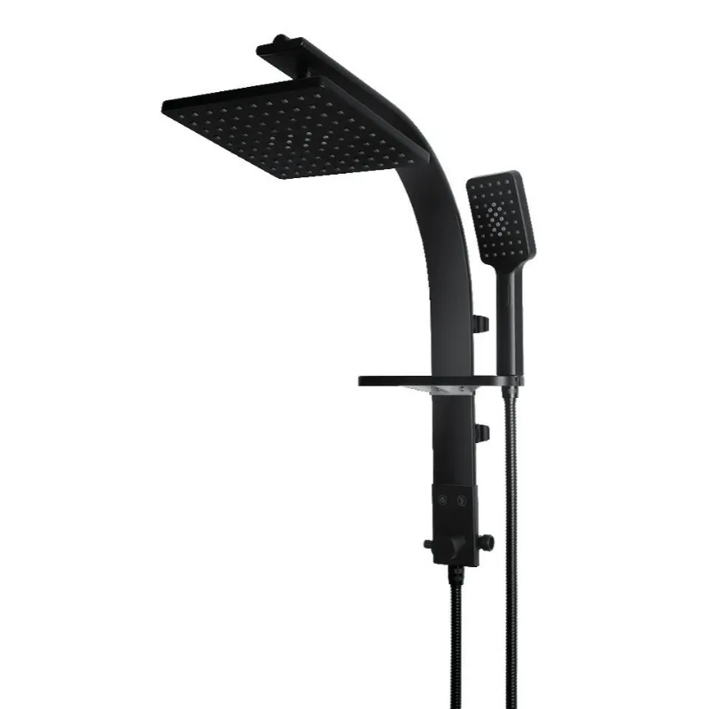 מוט פינוק ניתן לצידוד אלומניום אל חלד ראש מקלחת מרובע 22 ס"מ מזלף חד מצבי + סבוניה